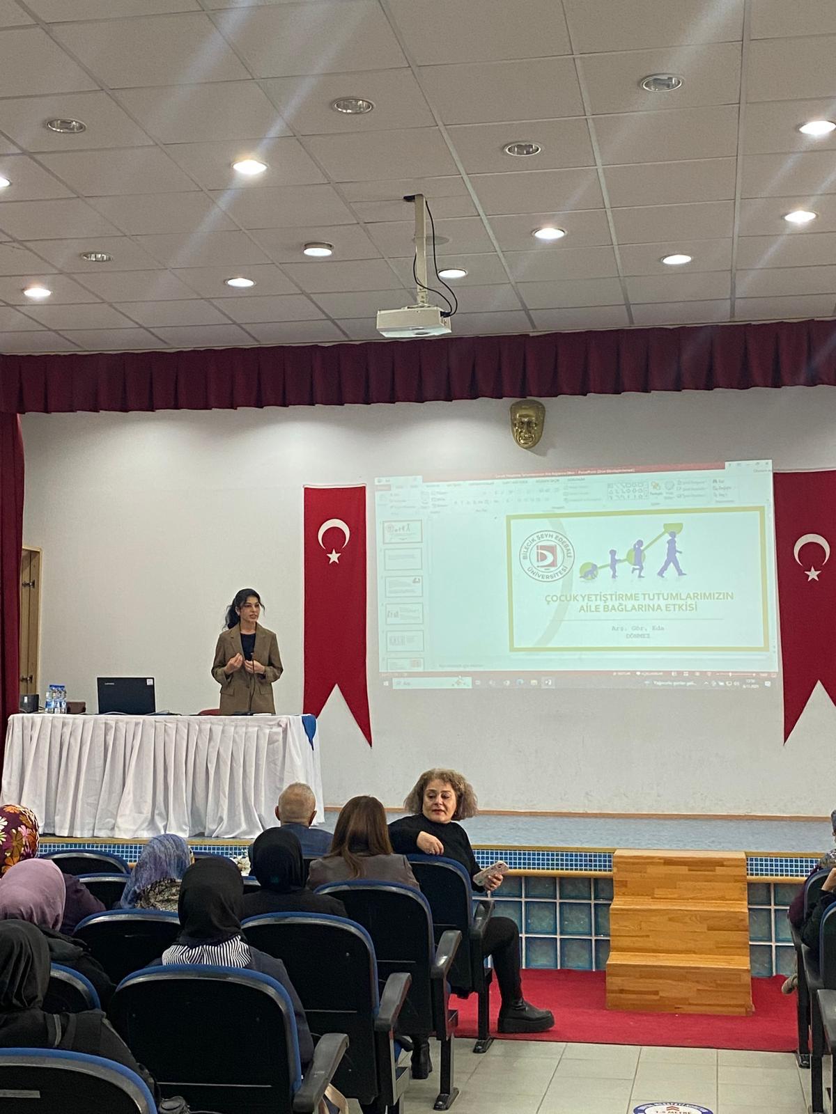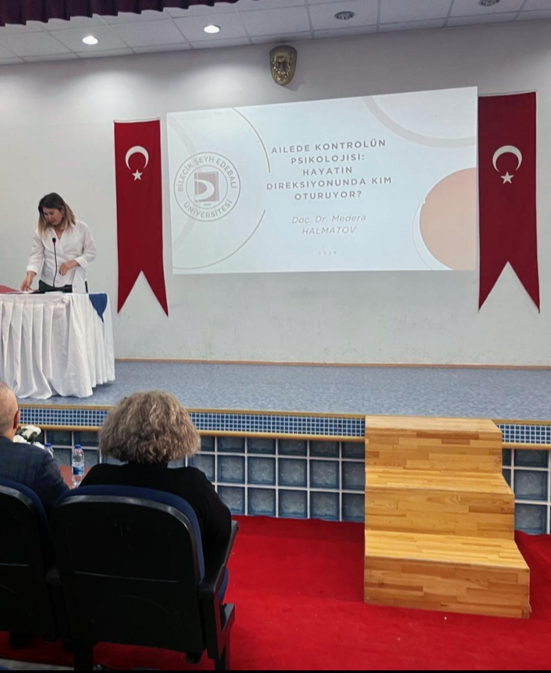 Bu anlamlı etkinlikte bölümümüz öğretim elemanlarından Doç. Dr. Medera HALMATOV "Ailede Kontrolün Psikolojisi" başlıklı sunumu ile yer alırken; Arş. Gör. Eda DÖNMEZ "Çocuk Yetiştirme Tutumlarımızın Aile Bağlarına Etkisi" konusunu ele almıştır.