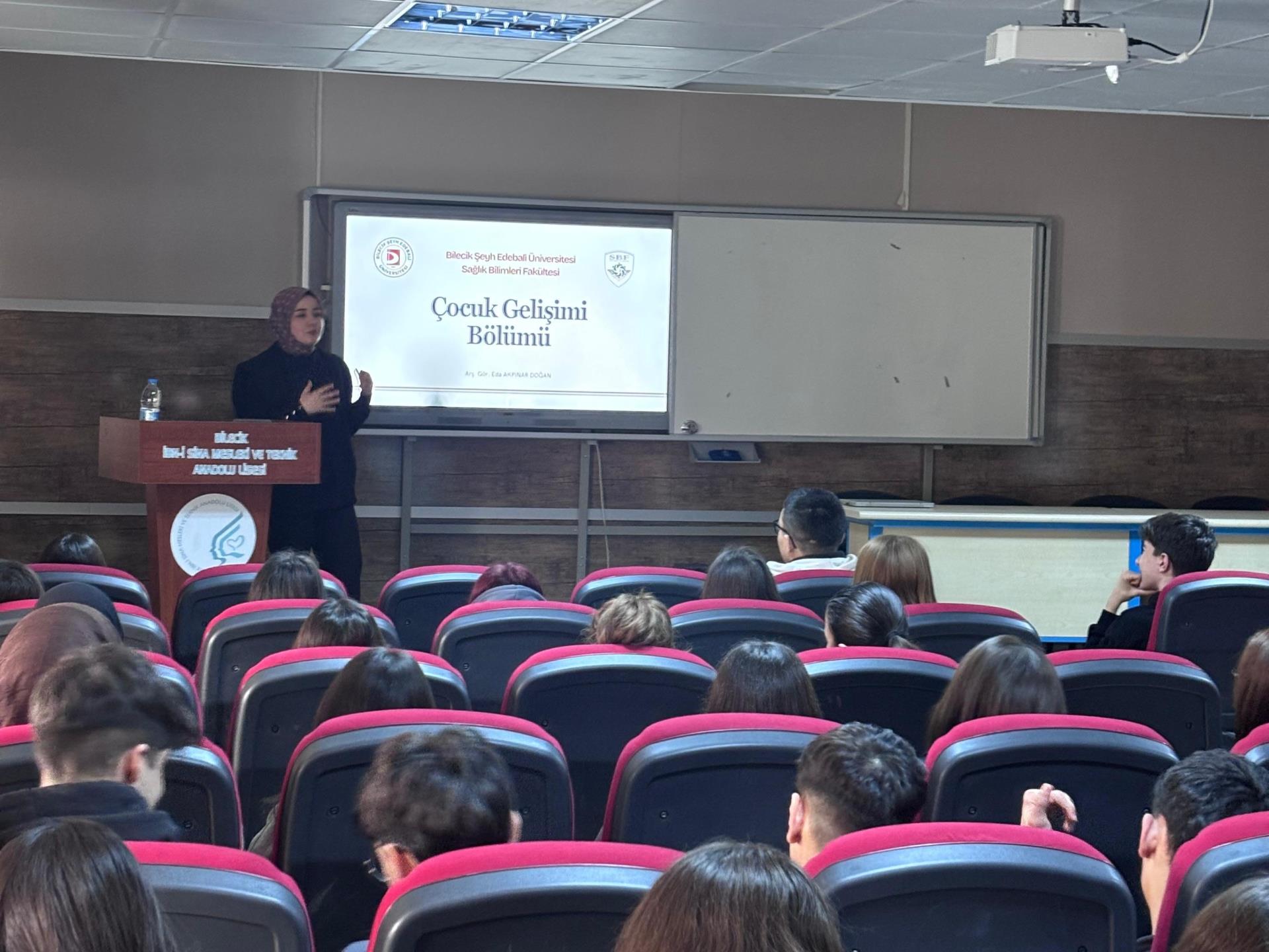 Üniversite-okul iş birliğini güçlendirmeyi amaçlayan Akademi-Lise Buluşmaları programı kapsamında, Çocuk Gelişimi Bölümü Araştırma Görevlisi Eda AKPINAR DOĞAN tarafından 9 Şubat tarihinde İbn-i Sina Mesleki ve Teknik Anadolu Lisesi’nde bir tanıtım etkinliği gerçekleştirildi.