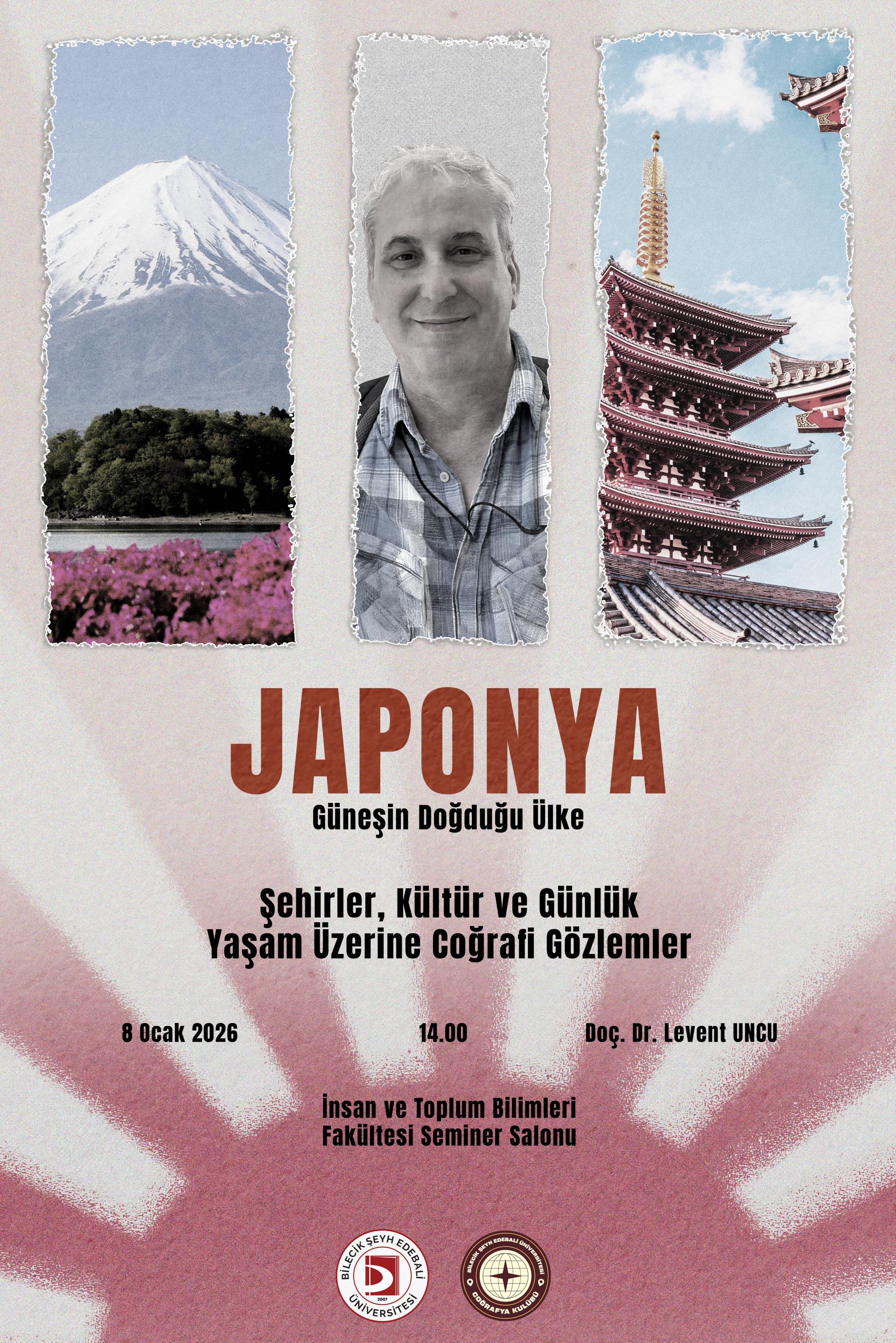 Doç. Dr. Levent Uncu tarafından yapılacak olan “Japonya: Şehirler, Kültür ve Günlük Yaşam Üzerine Coğrafi Gözlemler” başlıklı seminere tüm akademik ve idari personelimiz ile öğrencilerimiz davetlidir.