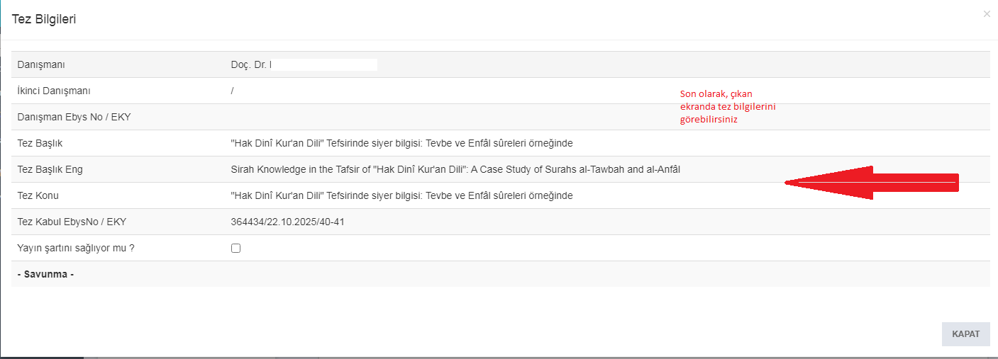 Soru: Danışman tez bilgilerine nasıl ulaşır?