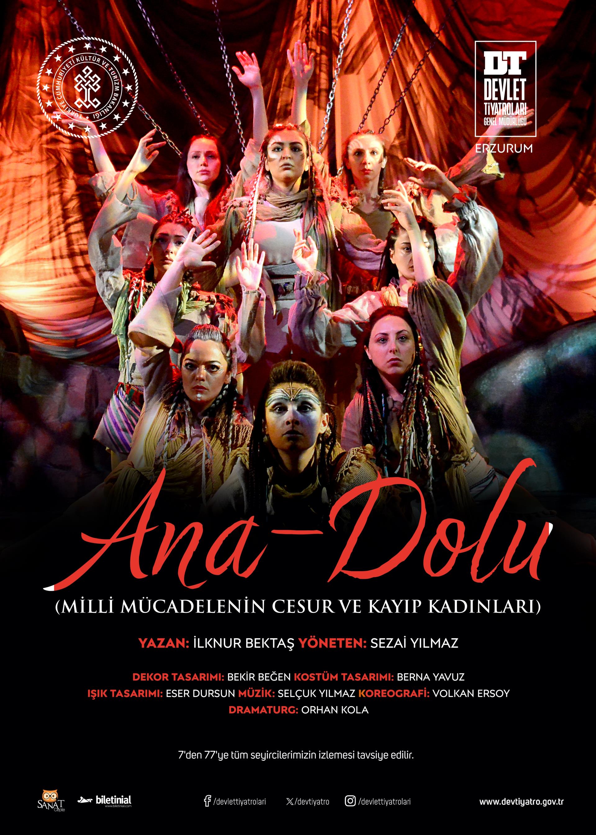 "Milli Mücadelenin Cesur ve Kayıp Kadınları Ana-Dolu" isimli tiyatro oyunu 08 Aralık 2025 Pazartesi günü Bilecik Şeyh Edebali Kültür ve Kongre Merkezinde sahne alacaktır.