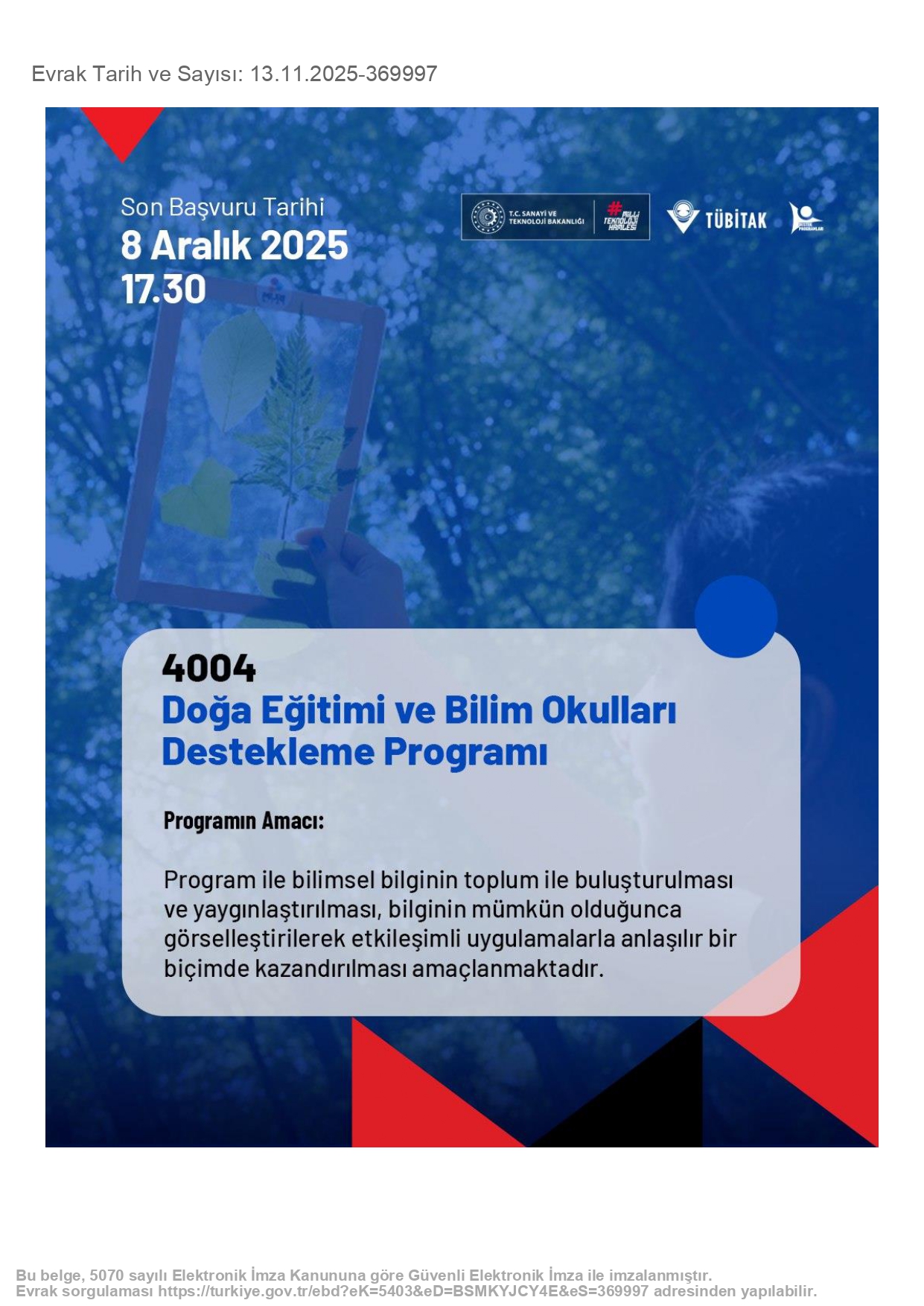 TÜBİTAK Destek Programları-4004 Doğa Eğitimi ve Bilim Okulları