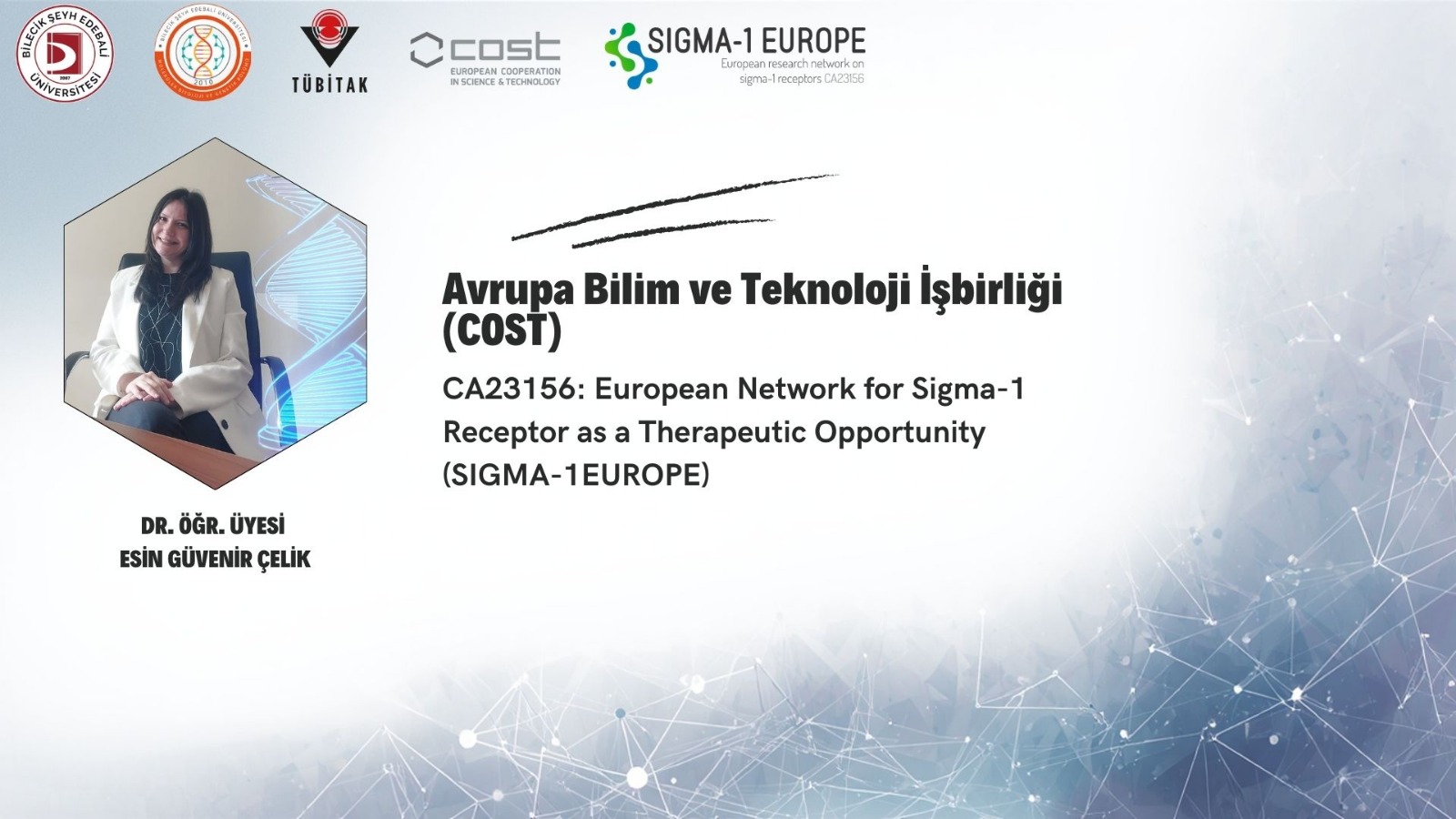 CA23156- SIGMA-1 EUROPE Hakkında: Sigma-1 reseptörünü; nörodejeneratif ve inflamatuar hastalıklar, kanser türleri ve ağrı patolojilerinin tedavisinde yenilikçi bir terapötik hedef olarak geliştirmeyi odak noktasına alan bu aksiyon, Avrupa genelindeki multidisipliner uzmanlıkları bir araya getiren prestijli bir ağdır. Proje, akademik bilgi birikiminin klinik uygulamalara aktarılmasını sağlayarak modern hastalık paradigmalarını geliştirmeyi amaçlamaktadır.