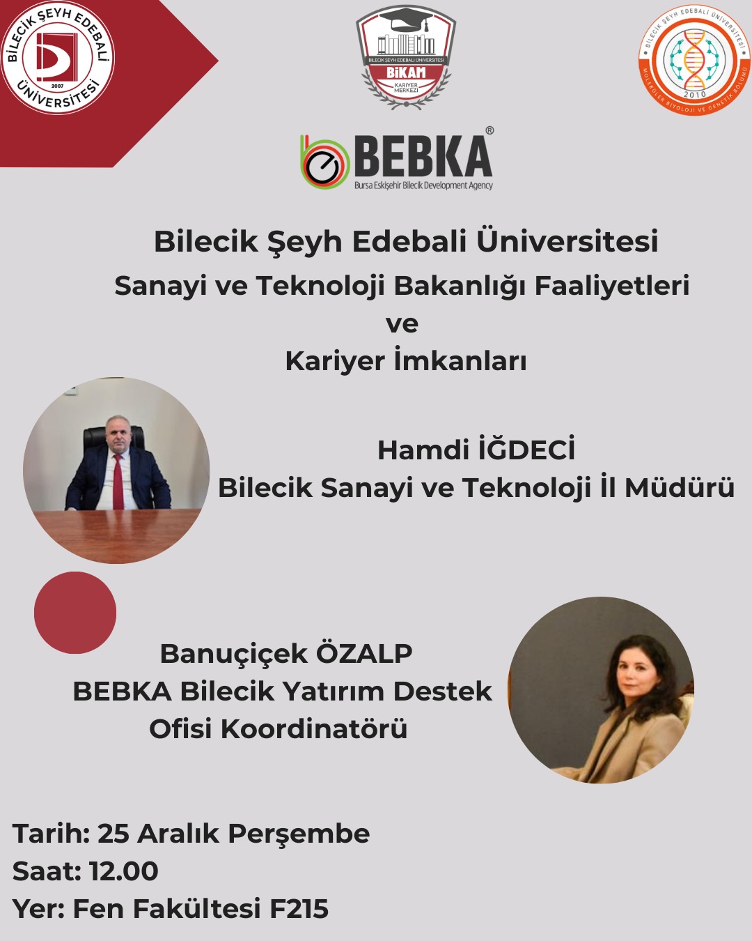 “Sanayi ve Teknoloji Bakanlığı Faaliyetleri ve Kariyer İmkânları” konulu etkinlik gerçekleştirilecektir.