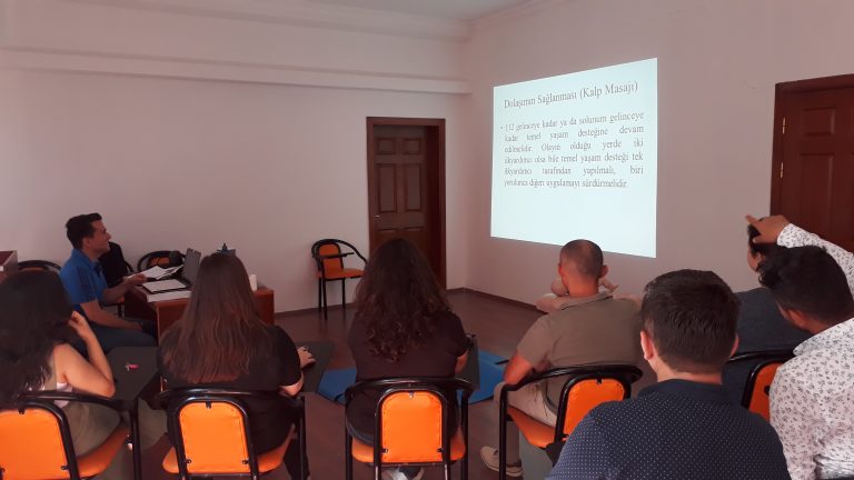 Üniversitemiz Personel Daire Başkanlığı tarafından 2019 yılı hizmet içi eğitim faaliyetleri kapsamında personeli yetiştirmek, bilinçlendirmek ve ilk yardımının önemini vurgulamak adına 22-23 Temmuz 2019 – 24-26 Temmuz 2019 tarihlerinde İlk Yardım Eğitim Merkezi Eğitim Salonunda düzenlenen “Temel İlk Yardım Eğitimi” Üniversitemiz Sağlık Yüksekokulunda Araştırma Görevlisi olarak görev yapan Bahadır DİNÇ tarafından verildi.