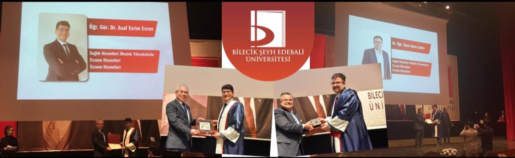 Üniversitemiz tarafından gerçekleştirilen “Akademik Cübbe Giyme ve Ödül Töreni” Q1 ve Q2 yayın sayıları en yüksek olan akademisyenler kategorisinde Dr. Ecz. Asaf Evrim Evren 8 yayını ile sağlık bilimleri alanında en yüksek yayın ödülünü alırken, sağlık bilimleri alanında en fazla akademik teşvik puanına sahip olan akademisyen ödülü kapsamında ise Dr. Ecz. Adem Şahin ödüle layık görülmüştür.