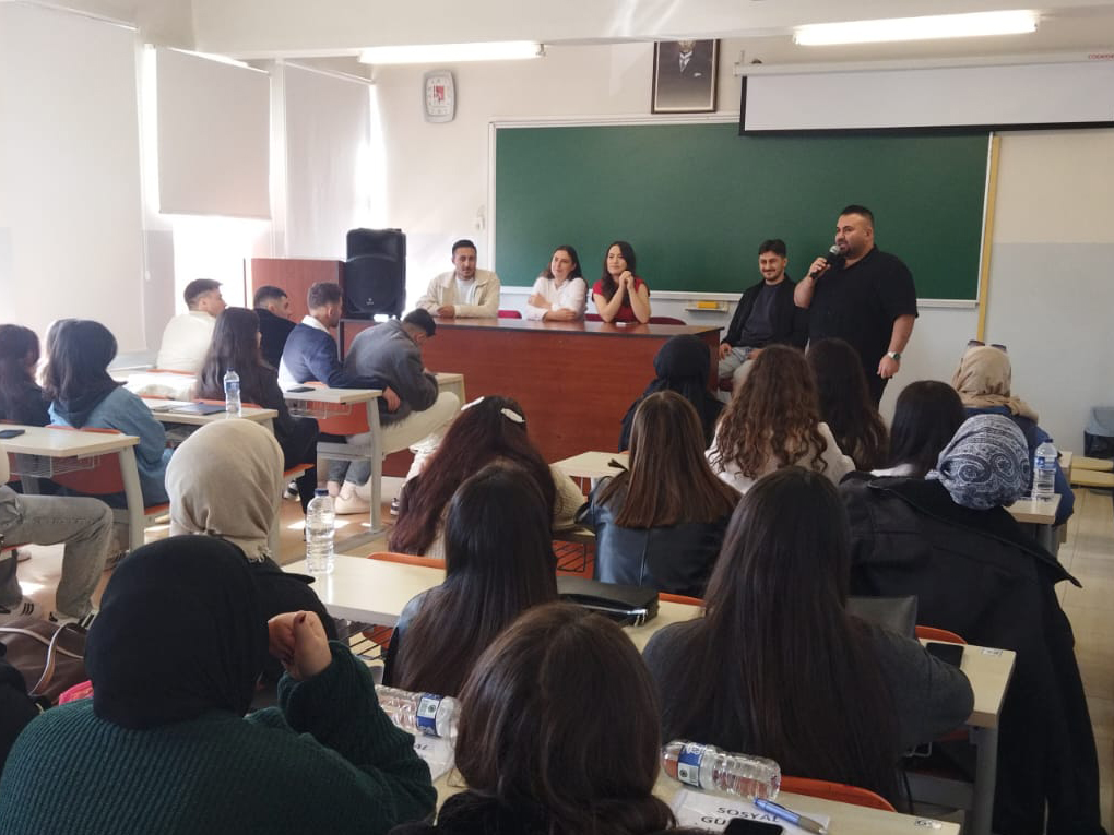 Meslek Yüksekokulumuzun Sosyal Güvenlik Programı tarafından düzenlenen “Bir Mezun Bir Hikâye” adlı söyleşi, 14 Ekim 2025 Salı günü amfi dersliğimizde gerçekleştirildi. Sosyal Güvenlik Programı Öğretim Görevlisi Yavuz Koç koordinasyonunda gerçekleştirilen etkinliğe, programın 1. ve 2. sınıf öğrencileri yoğun ilgi gösterdi. Söyleşiye, mezun olup Sosyal Güvenlik Kurumu (SGK) bünyesinde görev yapmaya başlayan eski öğrencilerimizden; Hatice Mütiş, Betül Dönder, Çağrı Mutlu ve Çağlar Mutlu konuk olarak katıldı.