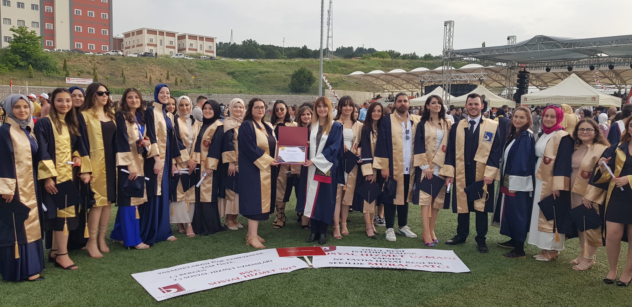 Sosyal Hizmet Bölümü olarak 2023 yılında ilk mezunlarımızı vermiş bulunmaktayız. 07.07.2023 tarihinde mezuniyet aşamasında olan öğrencilerimizle Sosyal Hizmet Andı’nı okuduktan sonra bölüm olarak hazırladığımız teşekkür belgelerini öğrencilerimize vermenin sevincini; Üniversitemiz tarafından 16.06.2023 tarihinde hazırlanan mezuniyet töreni ile de öğrencilerimizin lisans eğitimlerini tamamlamalarının mutluluğunu yaşamaktayız.