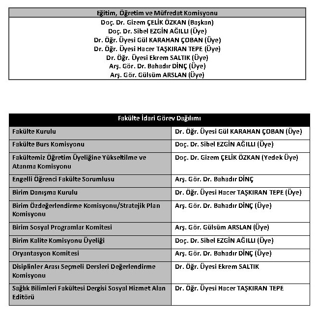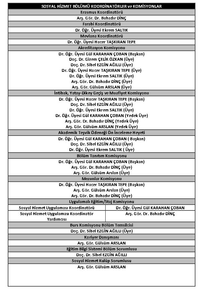 KOMİSYON VE KOORDİNATÖRLÜKLER