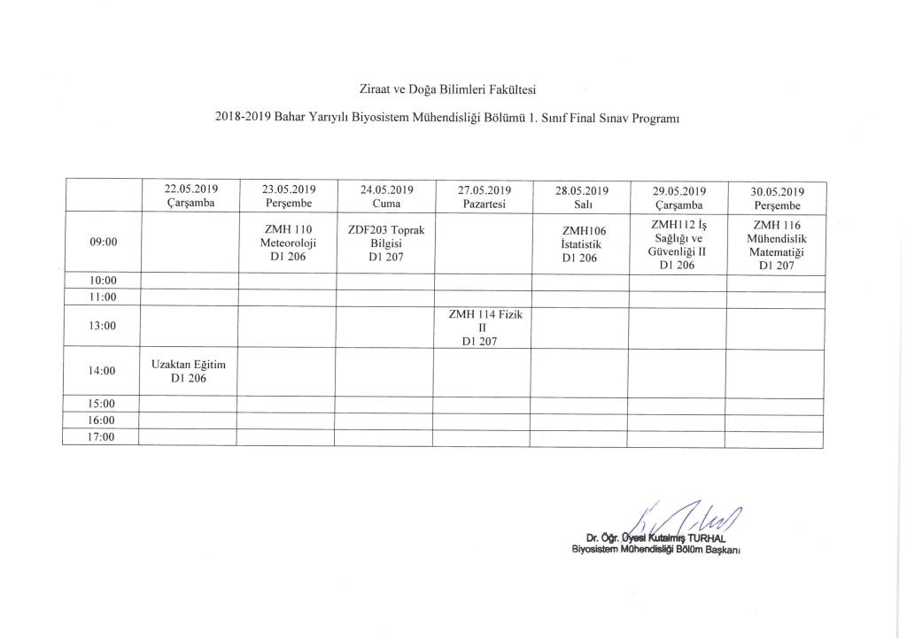 Bahar Yarıyılı Final Sınav Programları Belirlendi
