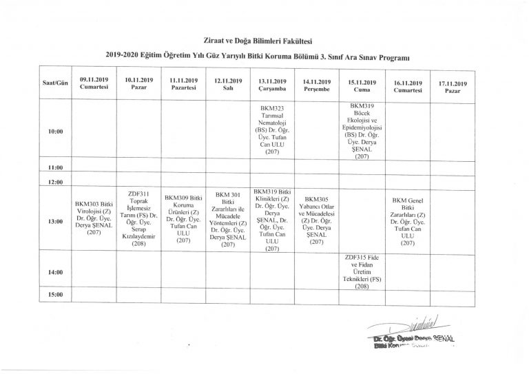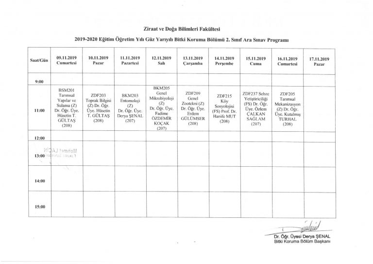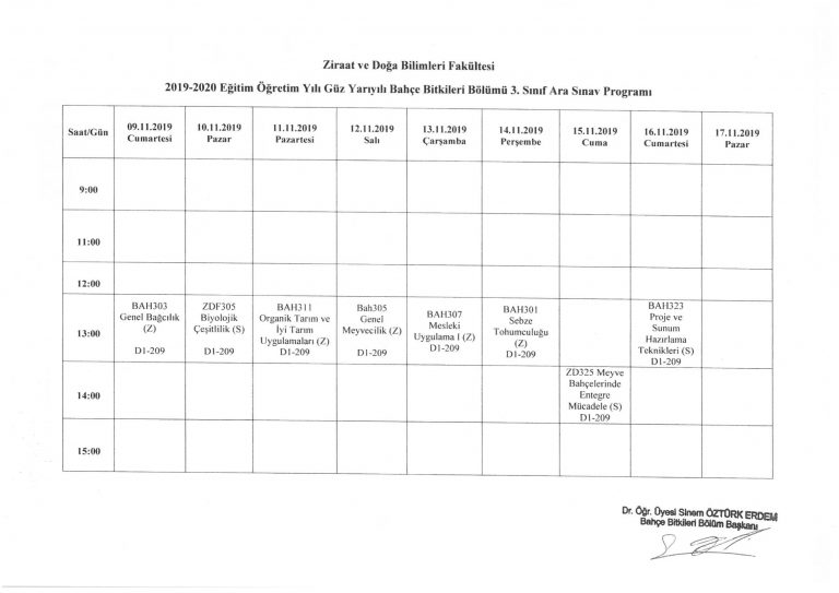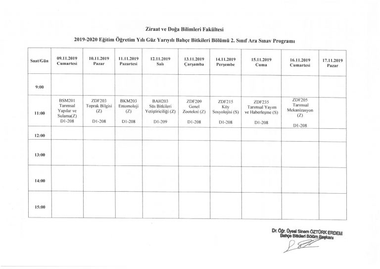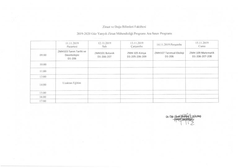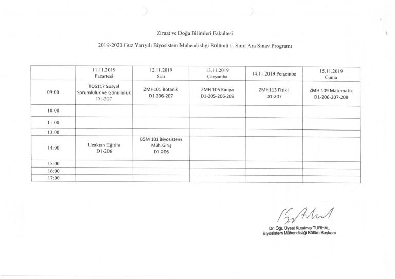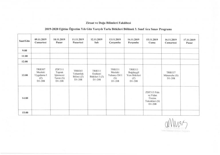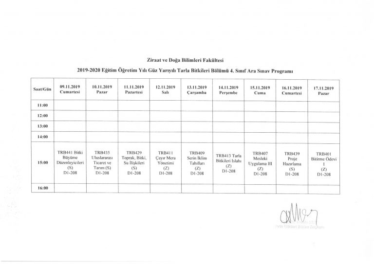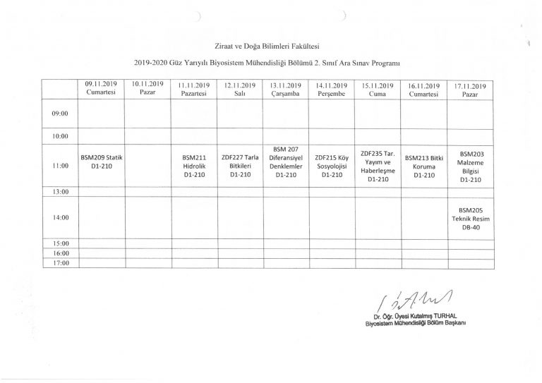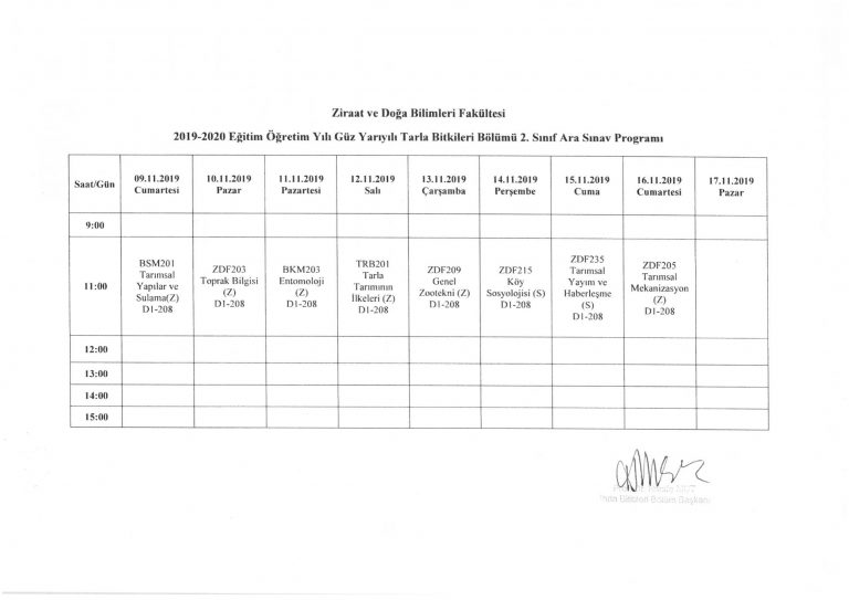 Ziraat Mühendisliği Programı İkinci Sınıf Bölüm Yerleştirme