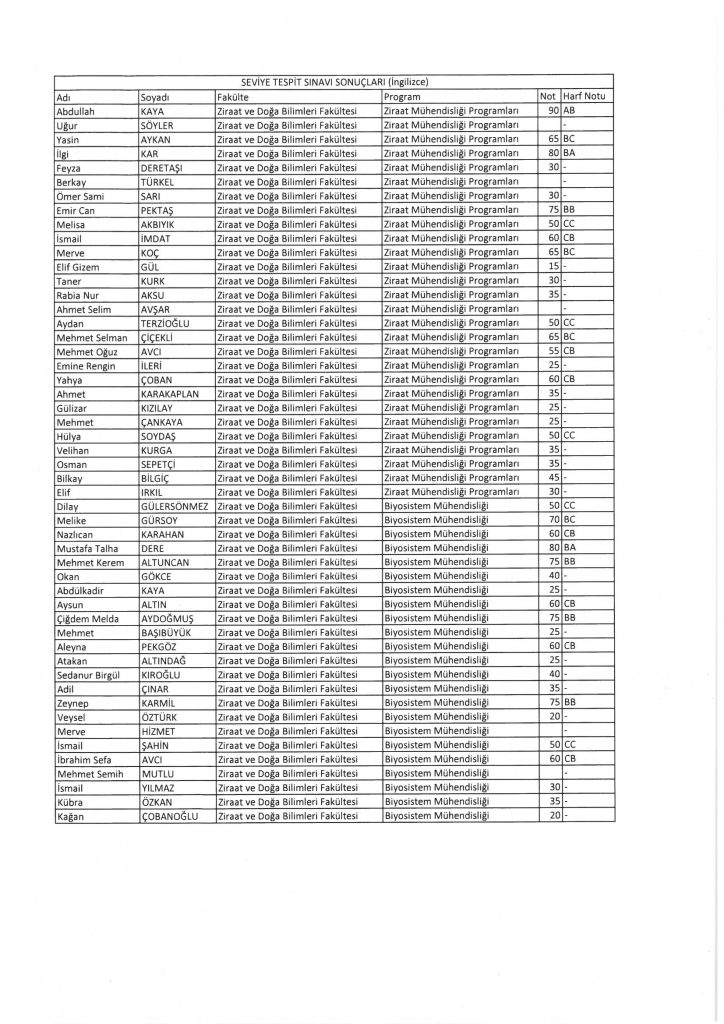 2019/2020 Eğitim Öğretim Yılında Seviye Tespit Sınavına girip başarılı olan öğrencilerin notları OBS’ye aktarılmıştır. Ayrıca bu öğrencilerin başarılı oldukları dersler de ders seçmelerinden kaldırılmıştır. Seviye tespit sınavından başarılı olduğu halde yükseltmeye almak isteyen öğrencilere ders seçme danışmanları tarafından toplu ders atama ekranından dersler 04 Ekim Cuma günü mesai bitimine kadar eklenebilecektir. İlgili öğrencilerin danışmanlarına başvurması gerekmektedir.