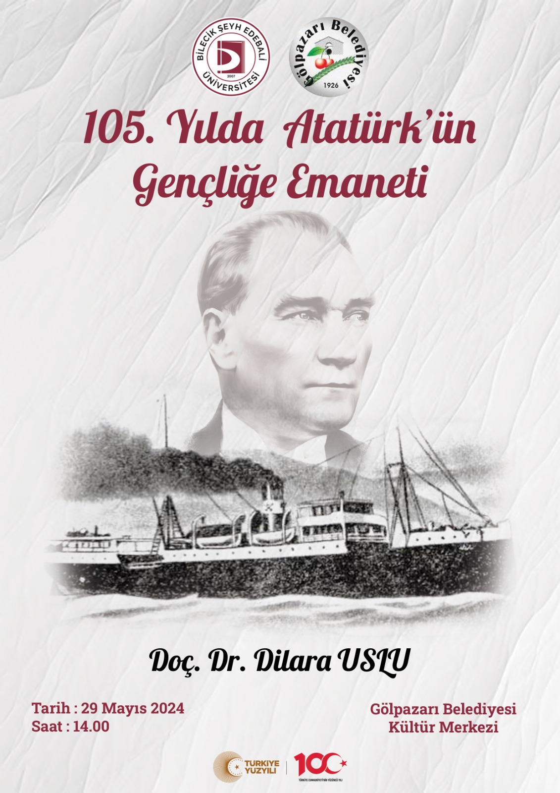 29.05.2024 Çarşamba günü saat 14.00'de Gölpazarı Kültür Merkezinde Gölpazarı Belediyesi işbirliği ile "105.Yılda Atatürk'ün Gençliğe Emaneti" konulu konferans gerçekleşecektir.