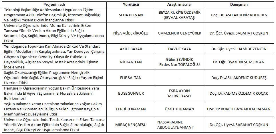Bölümümüz öğrencilerinden Seda Pelvan, Nisa Alibekiroğlu, Akile Bayar, NilhanTan, Elif Saltan, Buse Sungur, Ferdi Toraman ve Miraç Kençbesu tarafından planlanan araştırmalar 2022 yılı 1. dönem TÜBİTAK 2209-A Üniversite Öğrencileri Araştırma Projeleri Destekleme Programı’nda desteğe layık görülmüştür. Öğrencilerimizi ve danışman öğretim üyelerini tebrik ediyor, başarılarının devamını diliyoruz.