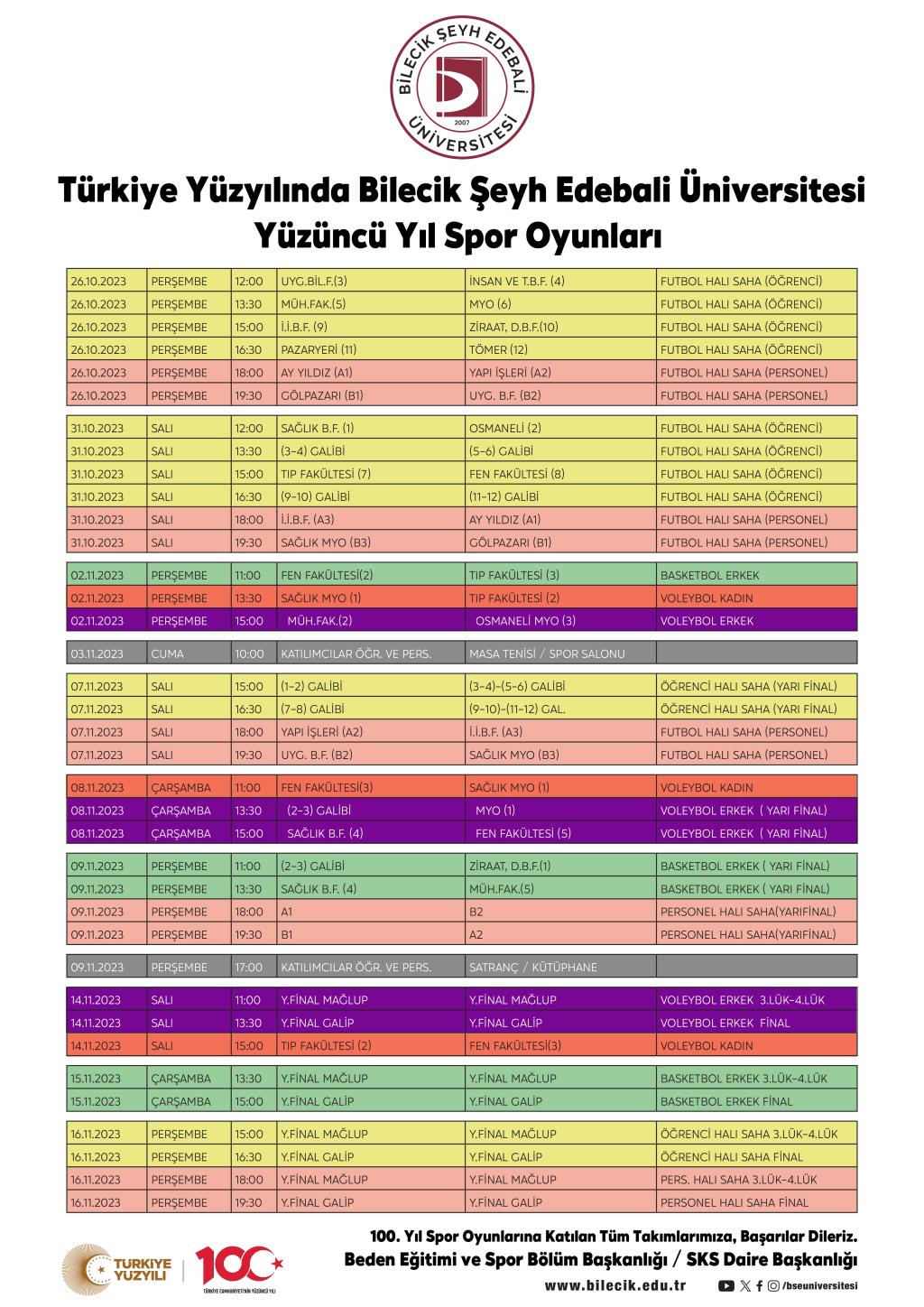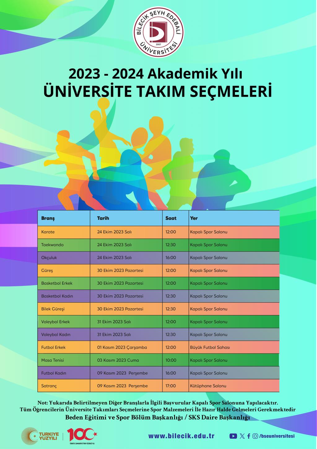 Üniversitemiz 2023-2024 Eğitim ve Öğretim Yılı Spor Şenlikleri fikstürü ile okul takımlarını seçme programına aşağıdaki linkten ulaşabilirsiniz.