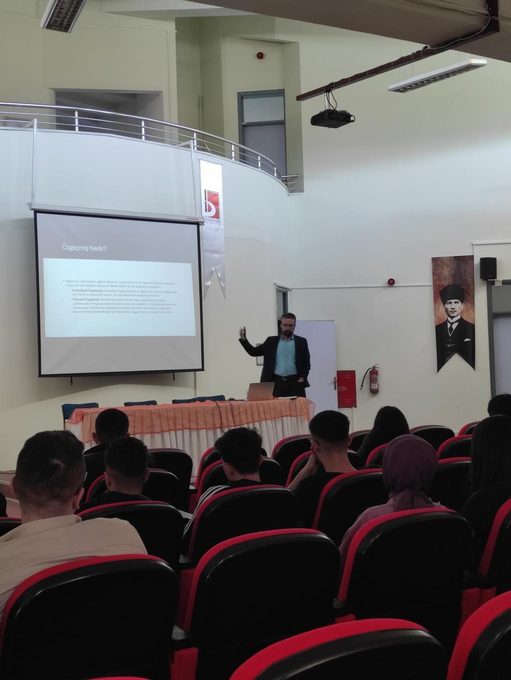 Meslek Yüksekokulumuz Akademik Personellerinden Öğr. Gör. Dr. Seyda Fatih HARMANDAROĞLU tarafından, Yüksekokulumuz öğrencilerine Kariyer Planlama / Kariyer Yönetimi dersleri kapsamında “Özgeçmiş (CV) Hazırlama ve Mülakat Teknikleri” Eğitim Semineri düzenlendi.