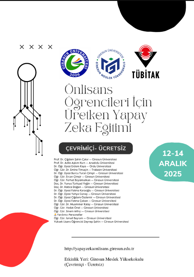 Giresun Meslek Yüksekokulu tarafından düzenlenen, TÜBİTAK destekli çevrim içi ve ücretsiz “Üretken Yapay Zeka Eğitimi” 12-14 Aralık 2025 tarihleri arasında gerçekleştirilecektir.