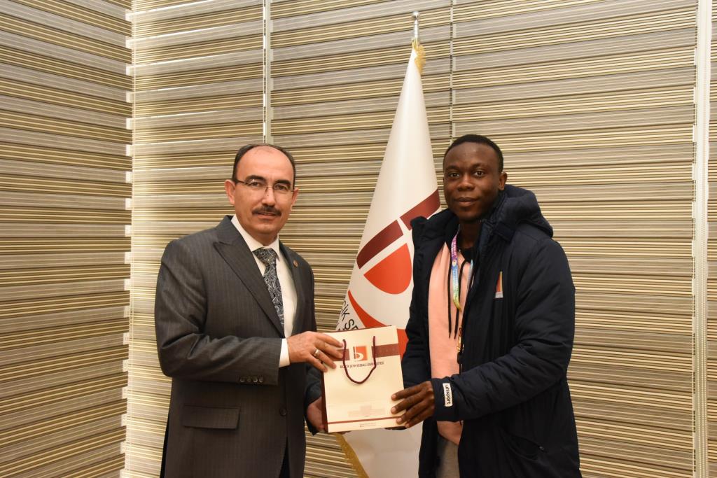 Takımımız ayağının tozuyla Rektörümüz Prof. Dr. Şükrü Beydemir’i ziyaret etti. Sporcularımızı tebrik ederek kendilerine hediyelerini takdim eden Rektörümüz Beydemir, sporcularımızın müsabakalar öncesinde iyi bir hazırlık süreci geçirdiğini, elde edilen başarıların bunun sonucunda geldiğini söyledi.