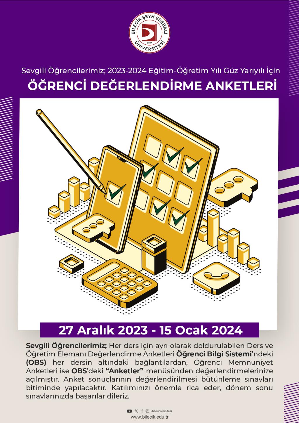 2023-2024 Eğitim-Öğretim Yılı Güz Yarıyılı İçin Öğrenci Değerlendirme Anketi