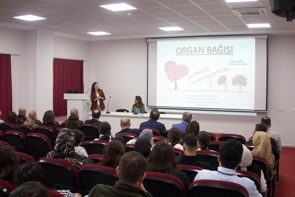 Organ Bağışı Haftası kapsamında 08 Kasım 2023 Çarşamba günü saat 12.30’da Fakültemiz Konferans Salonunda Organ Bağışı Haftası Bilgilendirme Paneli gerçekleştirildi. Fakültemiz Öğretim Üyeleri Prof. Dr. Ali Barbaros Başeskioğlu , Dr. Öğr. Üyesi Sevide Şencan ve Dr. Öğr. Üyesi Kevser Dilek Andıç’ın sunumlarıyla gerçekleştirilen panelde Organ Bağışının tarihçesi, ülkemiz ve dünyadaki durumu, organ nakli süreci ve insan hayatı açısından önemine vurgu yapıldı.