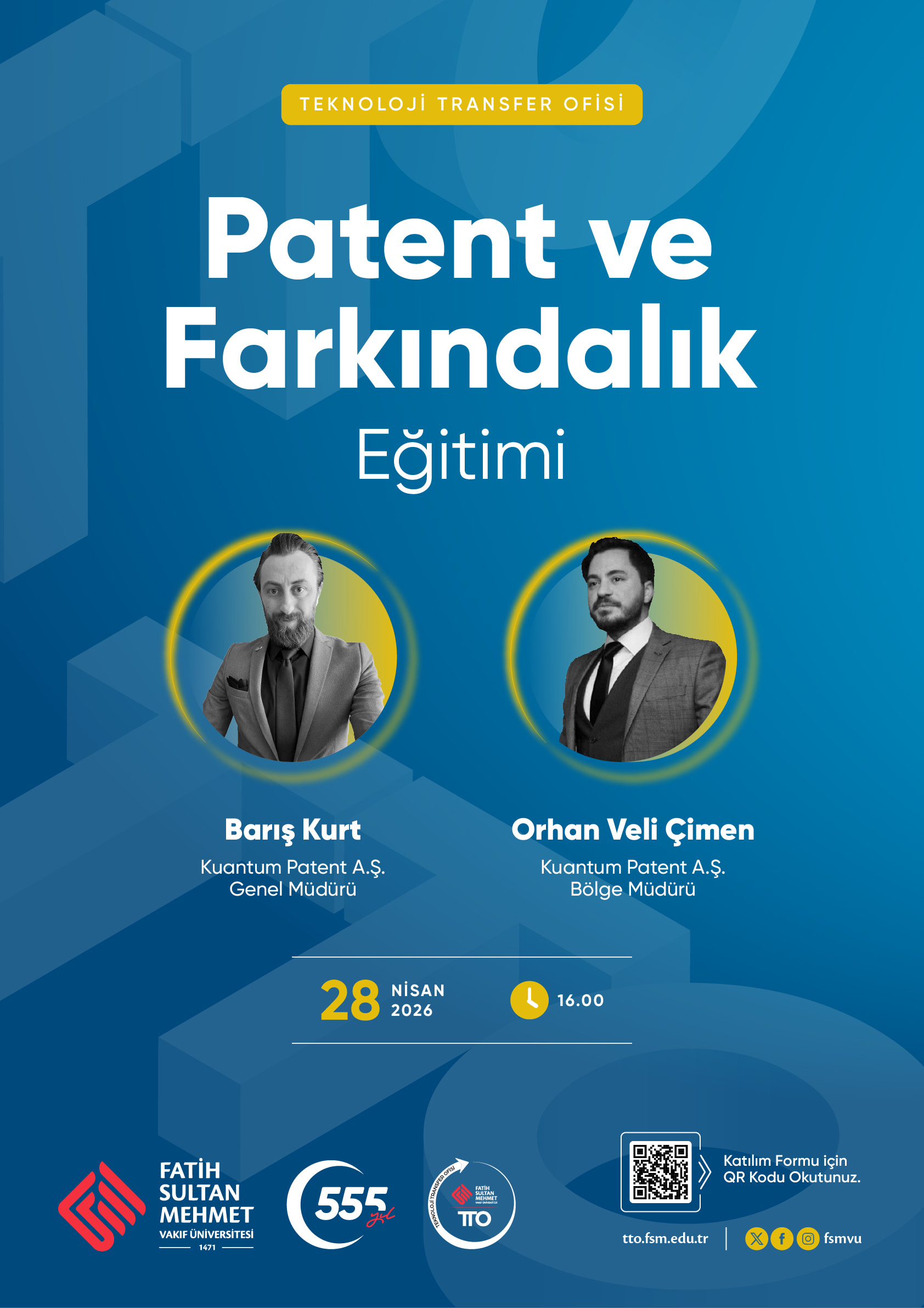 Fatih Sultan Mehmet Vakıf Üniversitesi Teknoloji Transfer Ofisi (FSMVÜ TTO) tarafından "Patent ve Farkındalık Eğitimi " düzenlenmektedir.