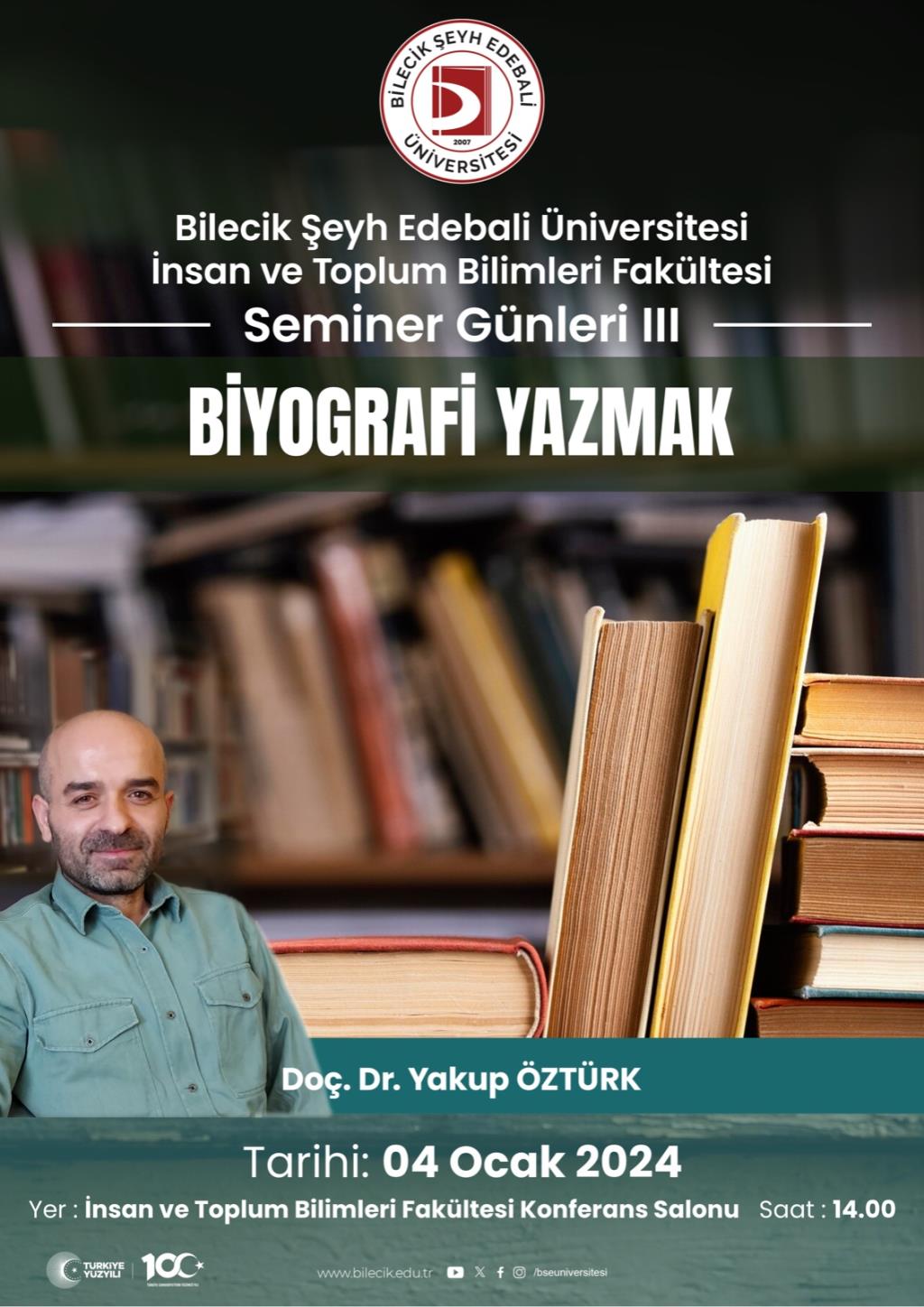 Bölümümüz Öğretim Üyesi Doç. Dr. Yakup Öztürk tarafından Biyografi Yazmak başlıklı seminer verilecektir.